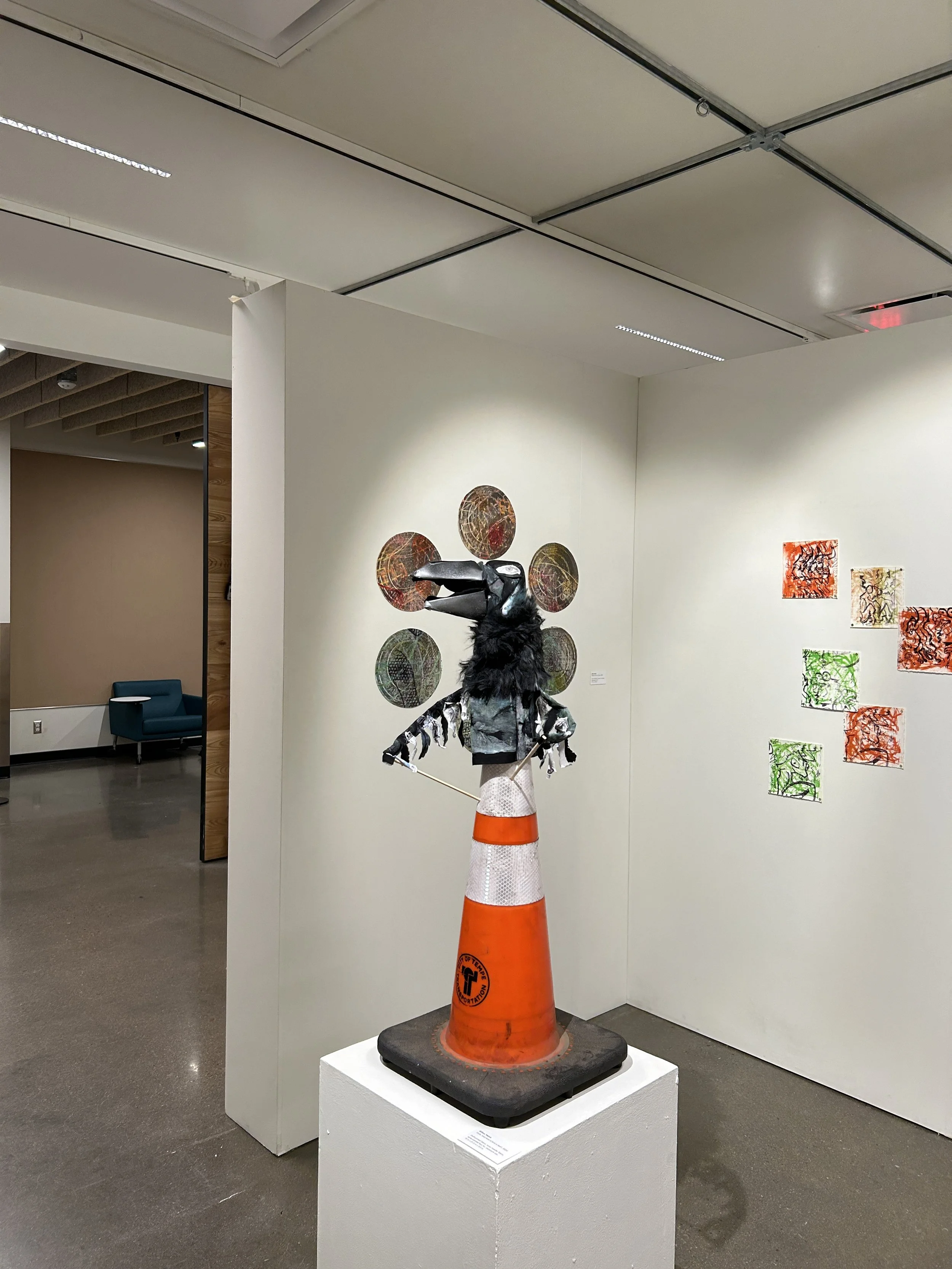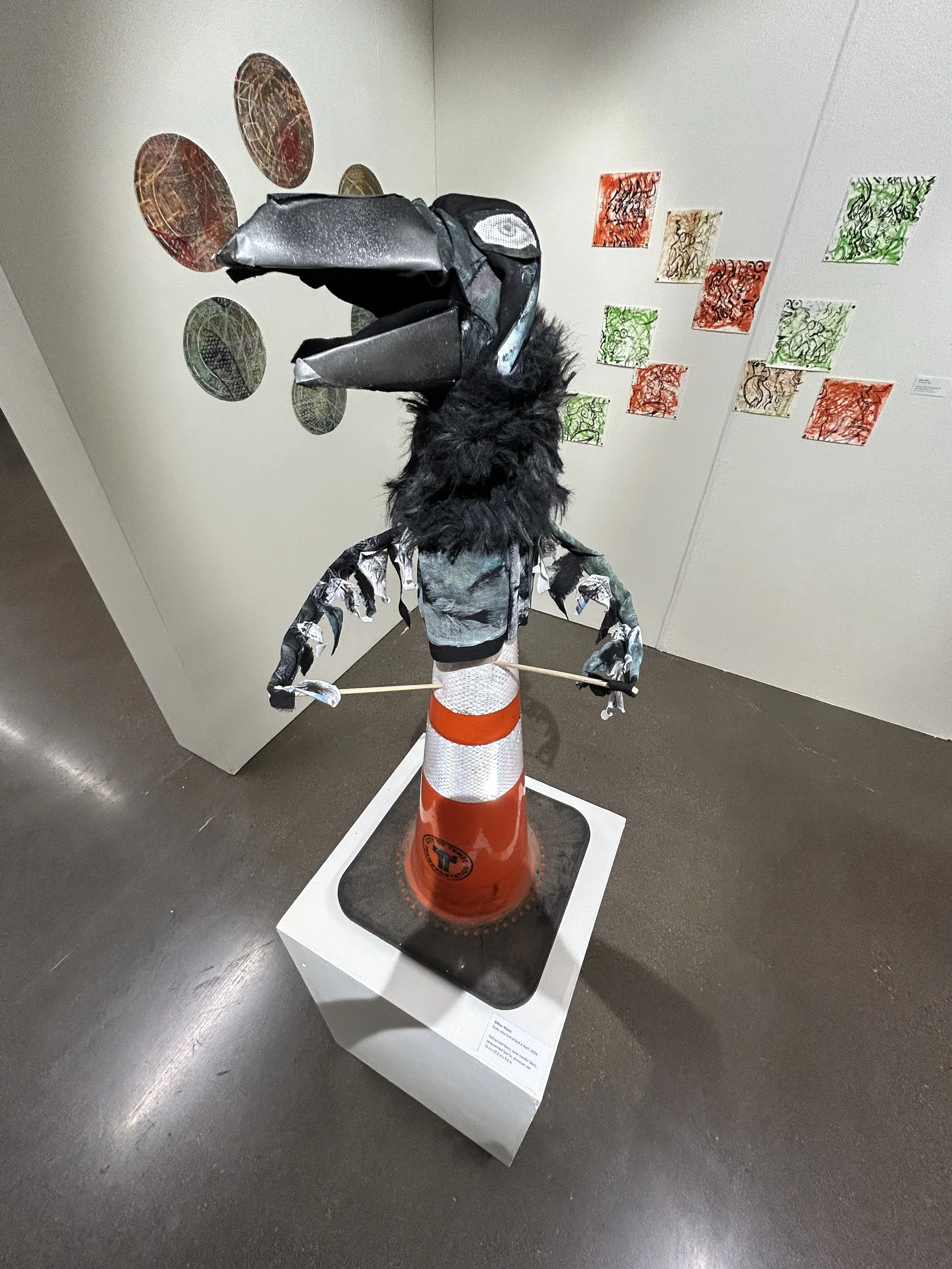 Gillian Welch creates works to appease the avian and avian-adjacent creatures that live alongside them. They use a variety of mediums, but often rely on the power of experimental printmaking methods to carry out a concept. This allows for a range of controlled mark-making and the use of photographic imagery. Gillian may use a wide assortment of materials in their works, but keeps a consistent visual language of color, texture, and form. The critters enjoy these aspects of art. It scratches a primal spot in the brain. It also helps that the forms usually consist of the beings themselves.